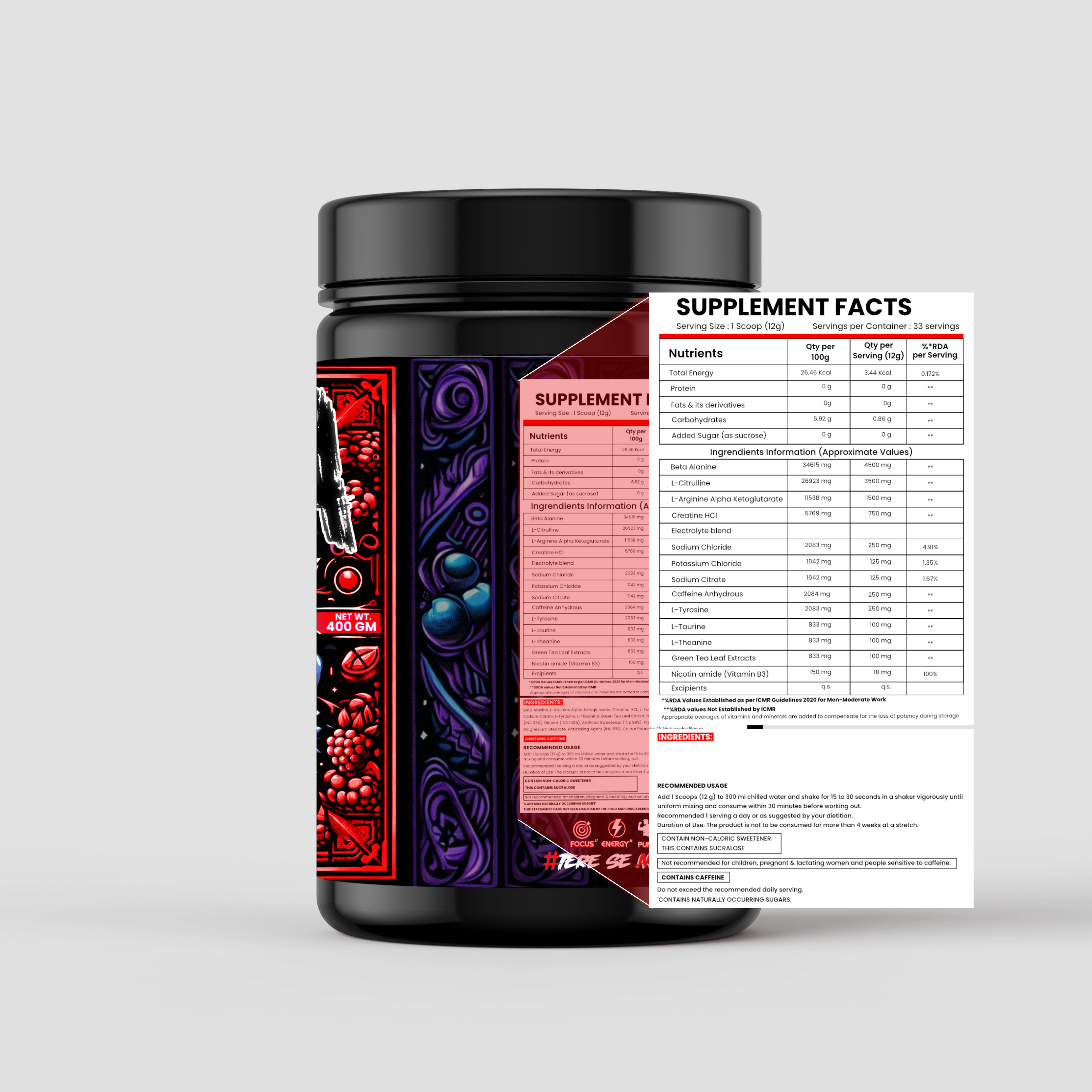 Deja Vu Watermelon flavour is a bold, thrilling pre-workout supplement designed to electrify your senses and elevate your performance. Infused with a powerful fusion of energizing ingredients, it’s your perfect partner whether you’re gearing up for an intense gym session or powering through a long day. The refreshing watermelon flavour delivers a crisp, juicy burst that makes every scoop a delicious ritual—but it's more than just taste; it’s pure performance in a jar that fits seamlessly into your active lifestyle.